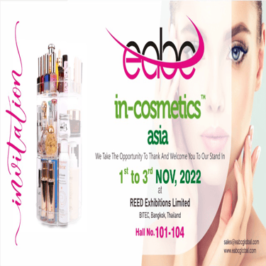 EABC Global is Participating in In-Cosmetics Asia 2022 - an event dedicated to the beauty industry within Asia. To showcase our range of cosmetics Products Which Include